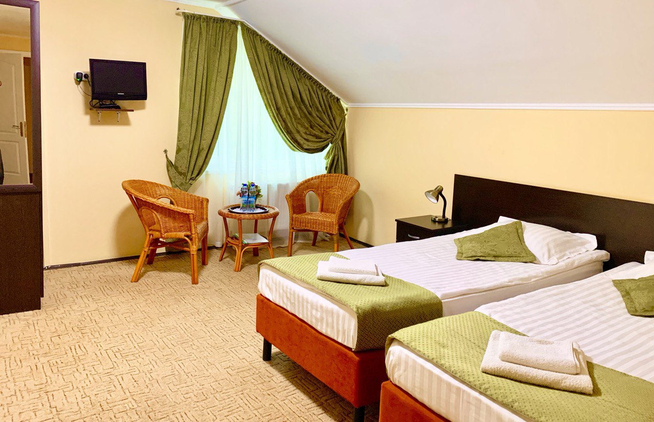 Номер «стандарт» укомплектован всей необходимой мебелью, имеет большую спальную комнату и душевую комнату.